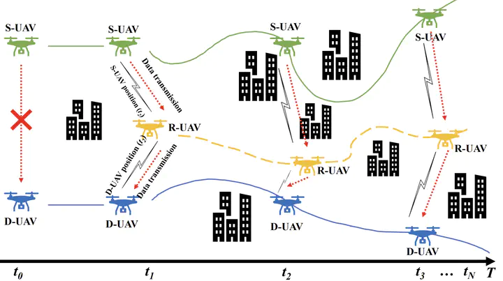 This paper proposes a novel relay algorithm to optimize the communication throughput of unmanned aerial vehicle (UAV) mobile relay formations while considering the challenges posed by obstacle avoidance, channel complexity, high dynamics of UAVs, and real-time mission requirements. To tackle the non-convex nature of this problem, we develop the unscented Kalman filter and hybrid particle swarm optimization (UKF-HPSO) algorithm. Initially, real-time prediction of the source and destination of UAV positions is accomplished using the UKF. Subsequently, these predicted coordinates serve as inputs for achieving the optimal deployment of relay UAVs under the constraints imposed by HPSO. The superiority of the UKF-HPSO algorithm compared to baseline approaches is demonstrated through extensive simulations. System throughput is effectively optimized while maintaining real-time performance by our proposed algorithm, which addresses the unique challenges of UAV communication in dynamic environments.